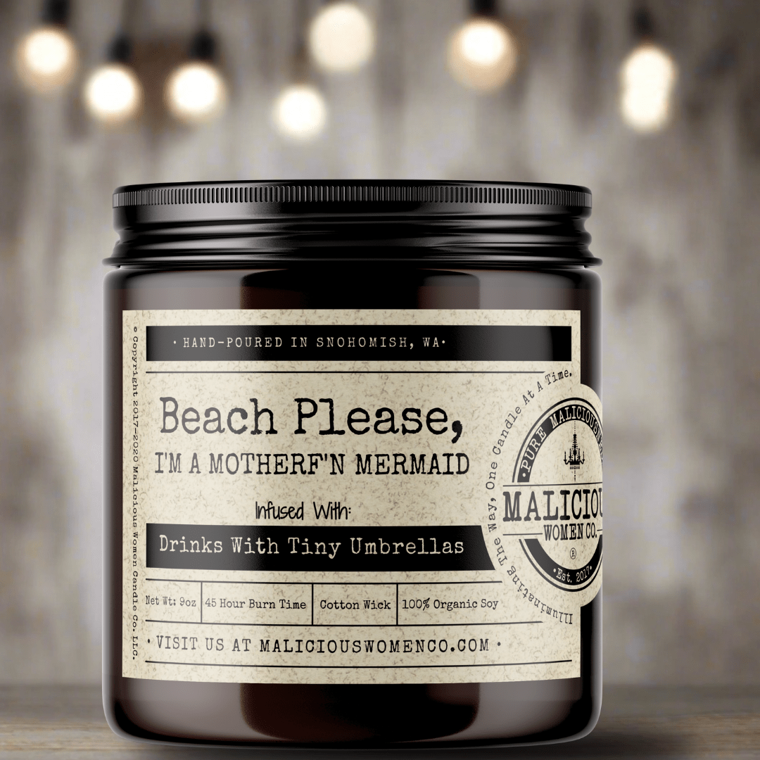 Beach Please! I'm A MotherF'n Mermaid 9oz Funny Candle Malicious Women Co